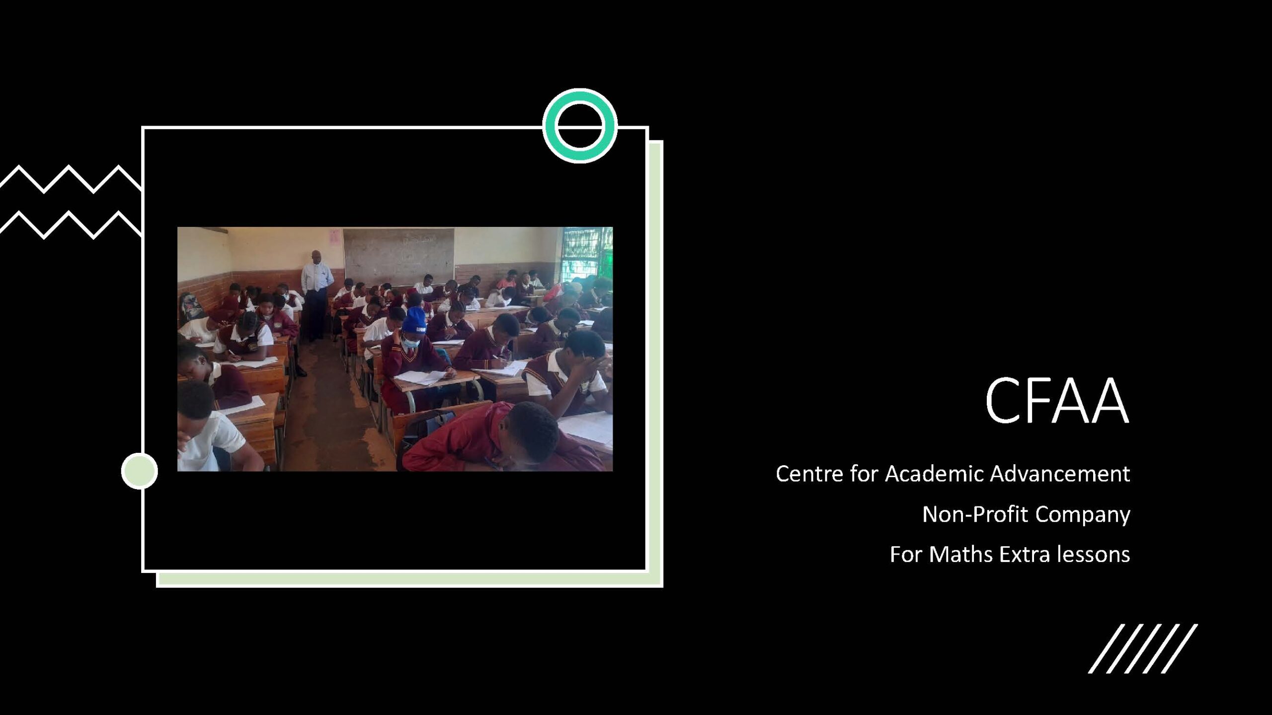 Centre For Academic Advancement NPC is a non-profit company formed to offer mathematics extra classes to disadvantaged learners particularly in the rural areas free of charge.